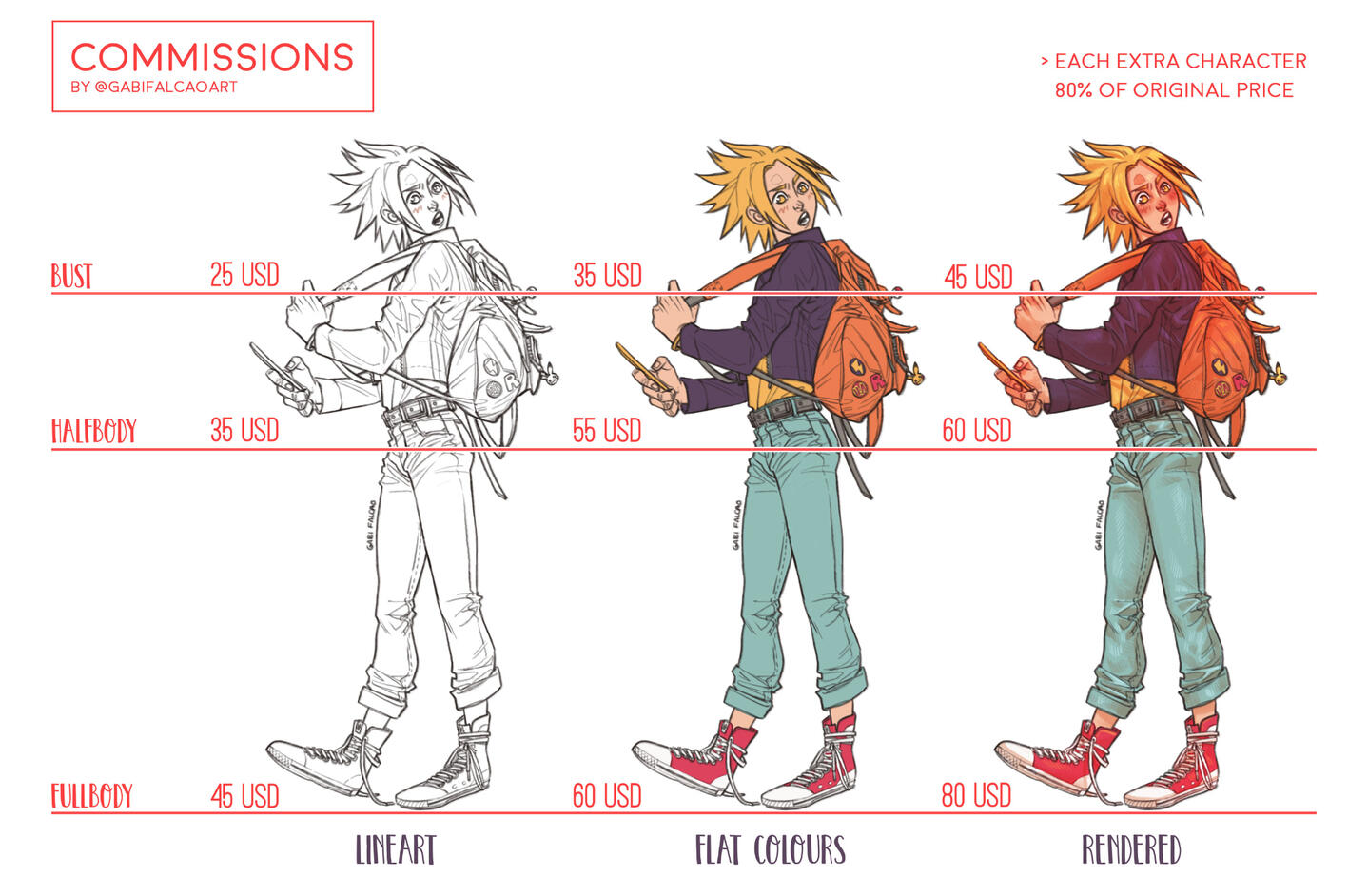 I show my progress, specially the sketch and lineart, to make sure it fits your original idea. References are very useful if you know what/how you want your piece!